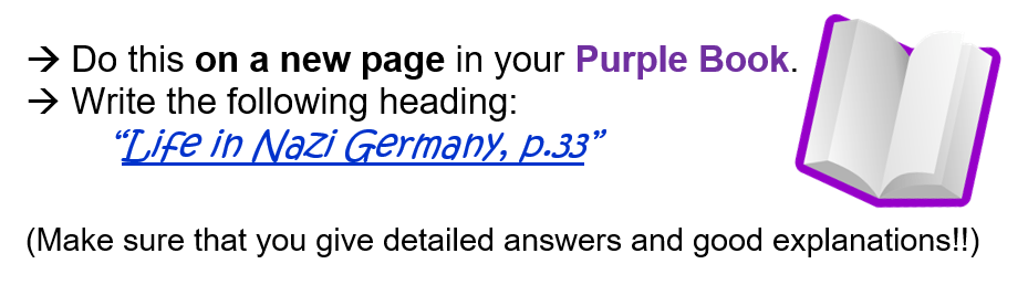 Do all the Questions on ”Life in Nazi Germany”, (p.33)