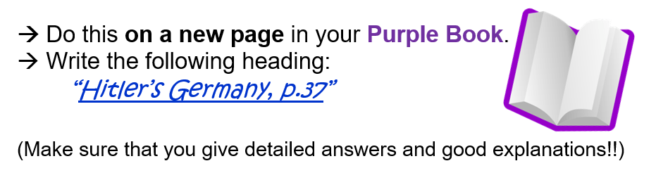 Also do all the Questions on ”Hitler’s Germany”, (p.37)