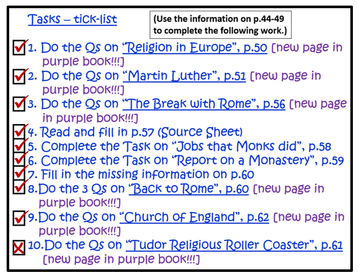 Make sure that the following tasks (on your tick-list) have been completed and ticked: