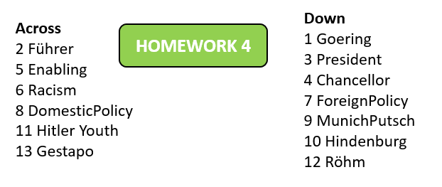 To finish off our topic on “Nazi Germany”, you are going to watch the entire History of Nazi Germany – from beginning to end (!!), as explained in this great animated video: (9:59 min long)