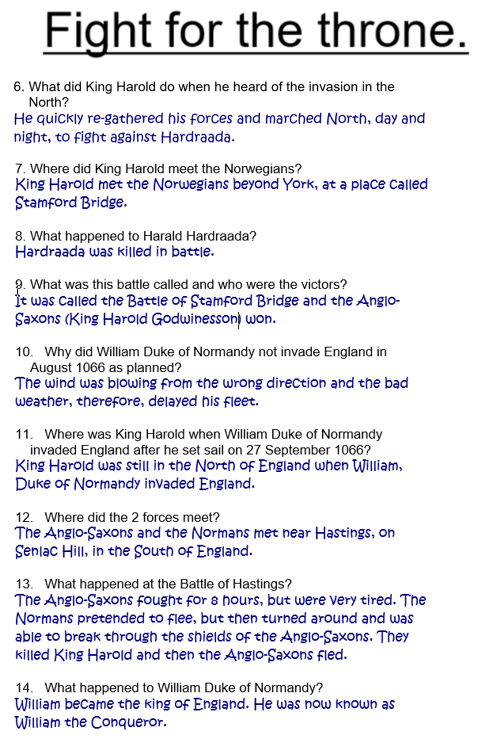 And finally, you are going to do a bit of reading to see what happened after the Norman Invasion… (If this is a little complicated, don’t get concerned! It will all become clear in the next lesson.)