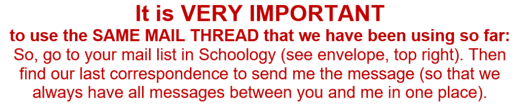 Send me a private message on Schoology (use the same mail-thread!) to confirm that you have completed all the tasks as instructed today!