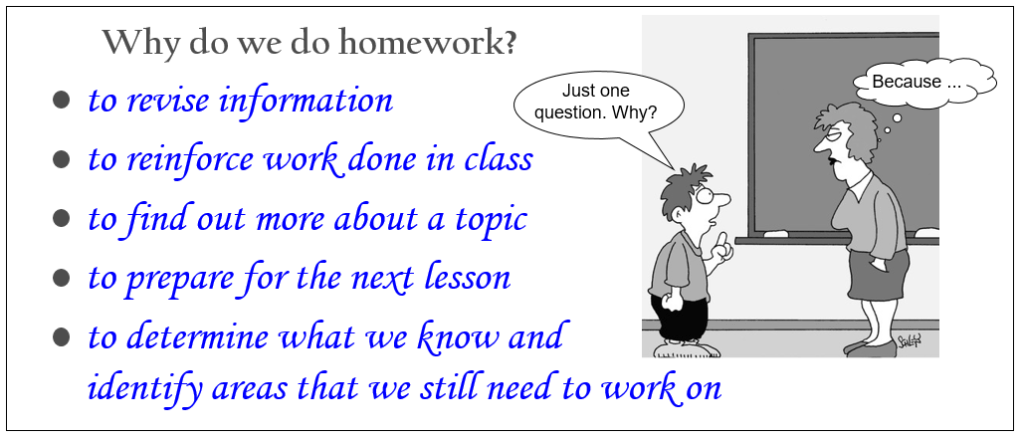 2) Homework is important as it benefits your learning in a number of ways.