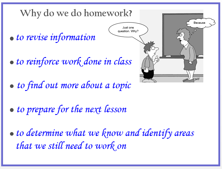 The school’s homework policy encourages students to hand in homework on time. (If not, you will lose marks or even get zero!)