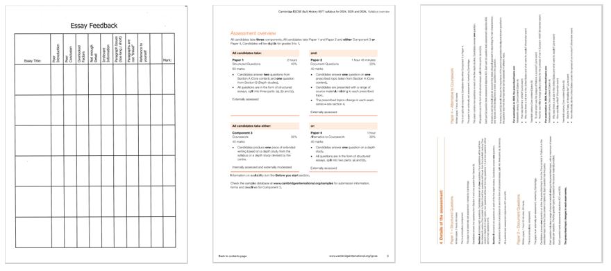 And what about assessment? Here is an overview of the IGCSE History course assessment: