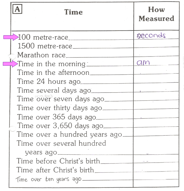 Complete the table to show how time is measured. (There are some clues in the “Father Time” article!) Here is an example of what you have to do: