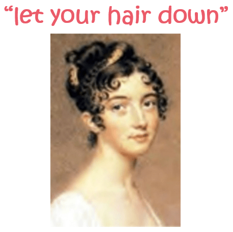 “Let your hair down” means “to relax or be at ease”. This expressions also has a historical origin: Parisian nobles appeared in public with an elaborate hairdo. Some of the more intricate styles required hours of work. So, of course it was a relaxing ritual for the aristocrats to come home at the end of a long day and let their hair down.