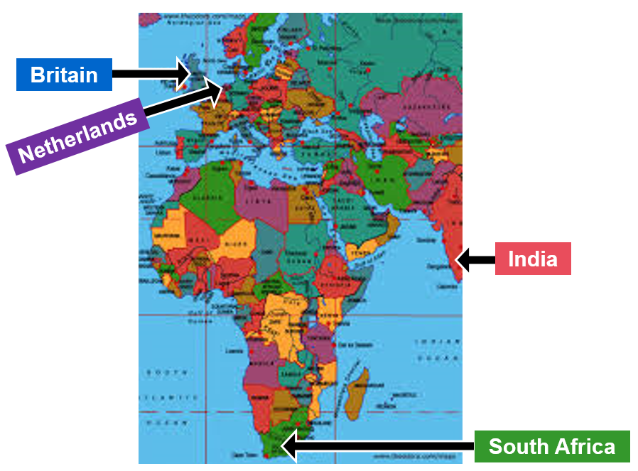 For example, there are Europeans living in Southern Africa because of colonization. In the 1600’s the Dutch traded with India by sailing around Africa to the east. The set up a halfway post at the tip of Africa to get fresh supplies for their sailors. These Dutch settlers are my ancestors! (That is also why I speak a language that is very similar to Dutch, called Afrikaans.) Today, some people in South Africa speak Afrikaans and some speak English. That is because the Dutch and the English were fighting in a war in the 1800’s and the English then took over the Dutch colony in Southern Africa.