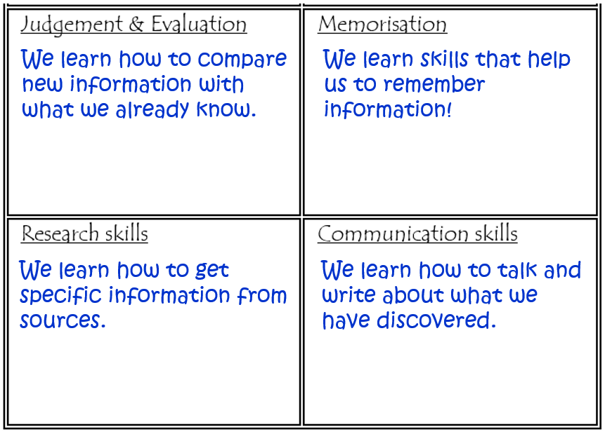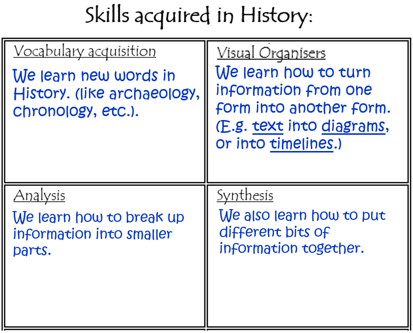 Carefully read the information in the table below to see which skills you will acquire by doing History as one of your school subjects.