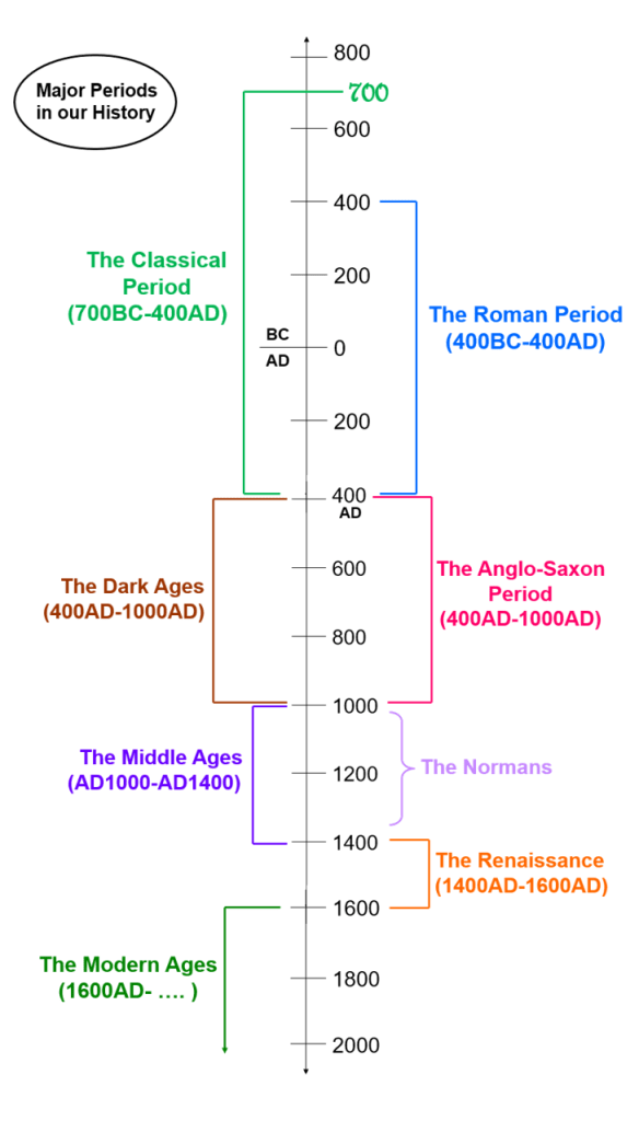Copy the various periods in our History onto the timeline on p.2 of your History Workbook.