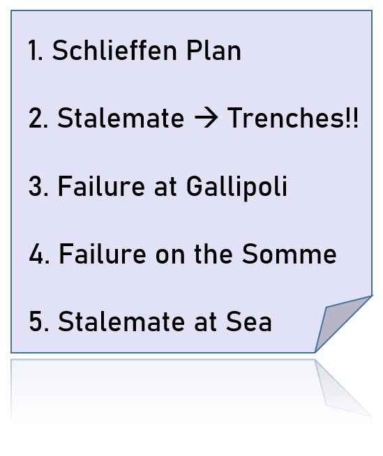 Finally, complete the worksheet on “How Stalemate Developed on the Western Front” (p.20 of your Workbook).