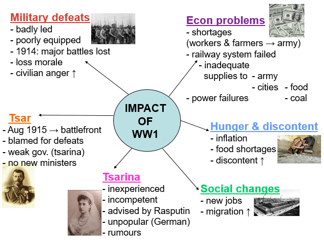 Now do the “cut-and-paste” task, using the material provided, to show how Russia was affected by her involvement in WW1. (You need to cut out the information and arrange it in the form of a spider diagram that shows The Impact of WW1 on Russia.)