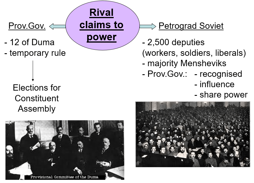 So? Who ruled Russia after the abdication of Nicholas II? There were rival claims to power! Officially it was the Provisional Government who ruled Russia…