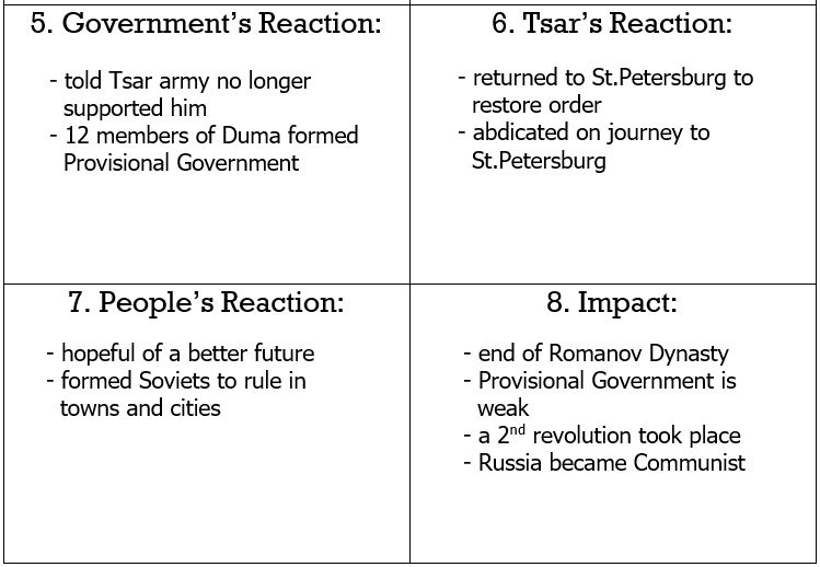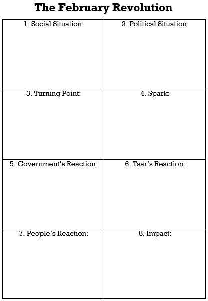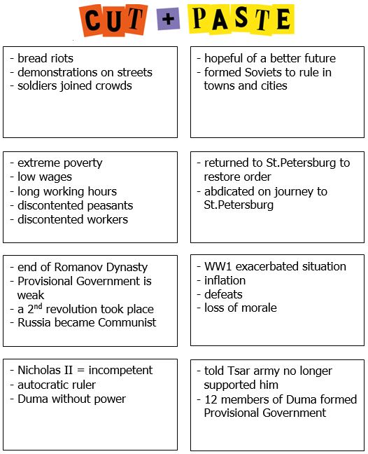 Complete the cut-and-paste task on the February Revolution. You will need the following handouts: