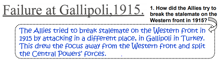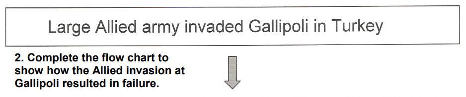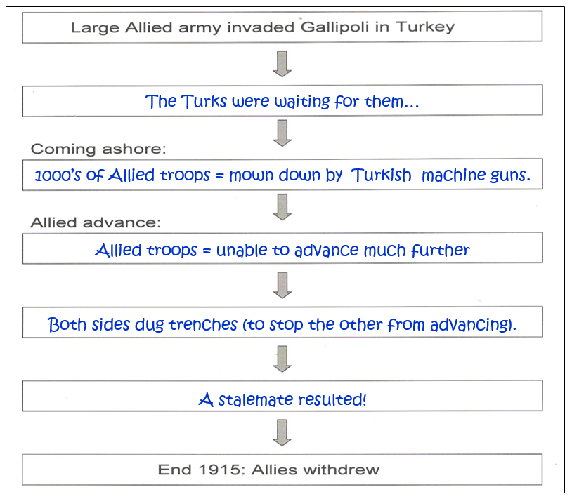 (The flowhart shows how the Allied invasion at Gallipoli resulted in failure!)