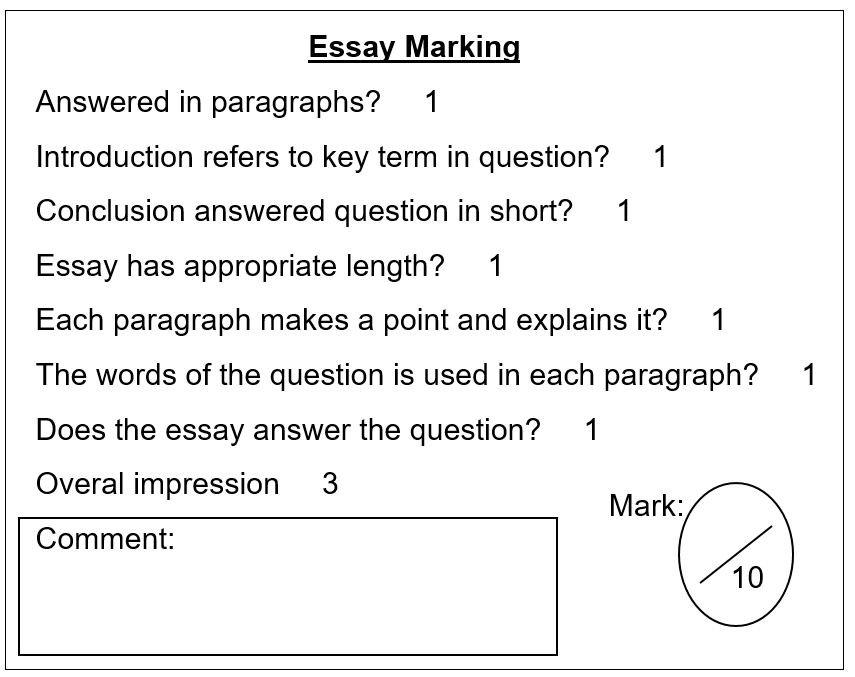 (If you want you may swap with someone else in the class and mark each others’ essays.)