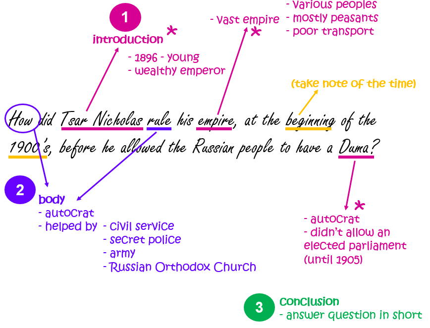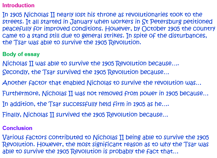 Make sure that your essay also addresses the correct factors involved in the reign of Nicholas II at the beginning of the 1900’s! Your answer could included the following, but must always express the relevance of the information to the specific question: