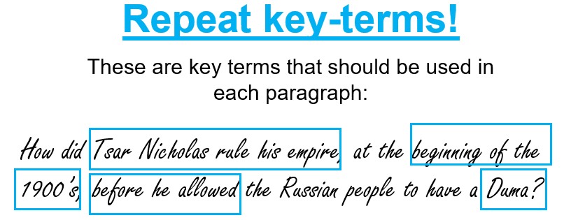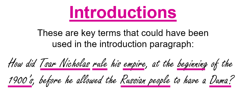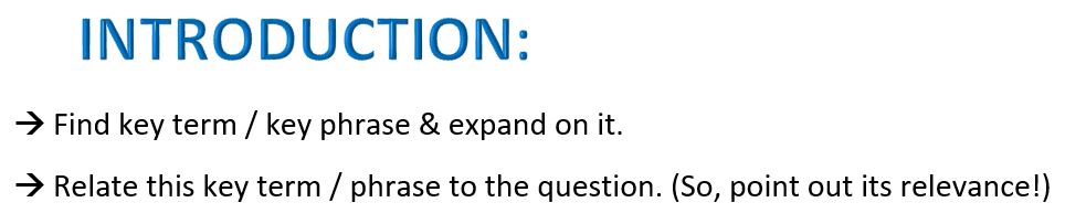 - How to write an introduction, using key words in the essay question.
