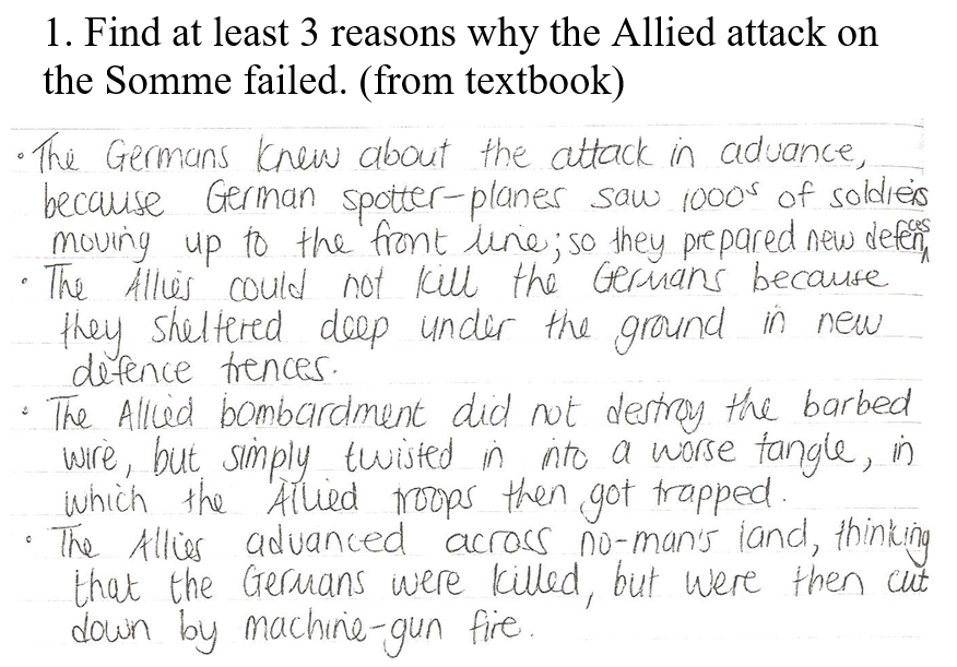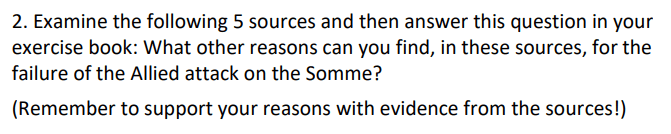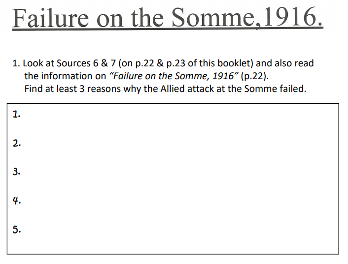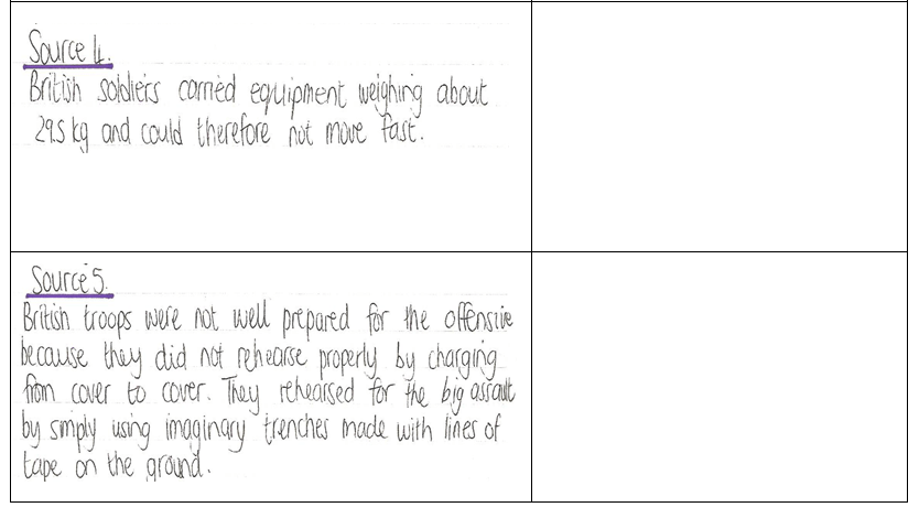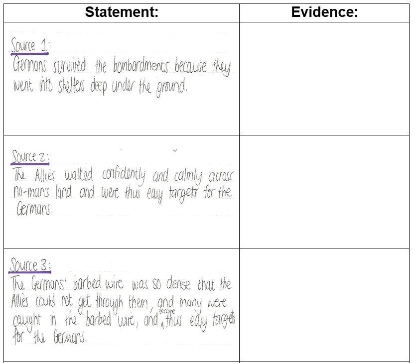 STEP 3: Complete the table by providing evidence for the statements about the Battle on the Somme.