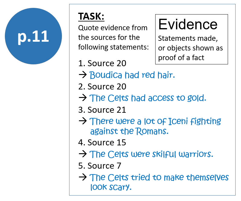 Now look how these sources can be used to provide evidence about the Celts and about Boudica: