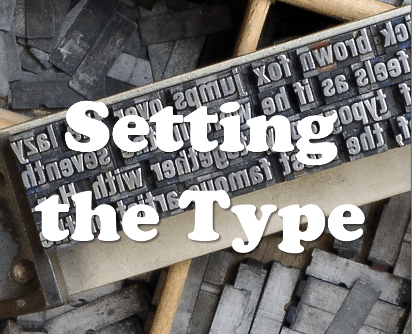 “Setting the type” refers the process of putting the letters in the correct order to make words, sentences, paragraphs – and ultimately to form the pages of a book!