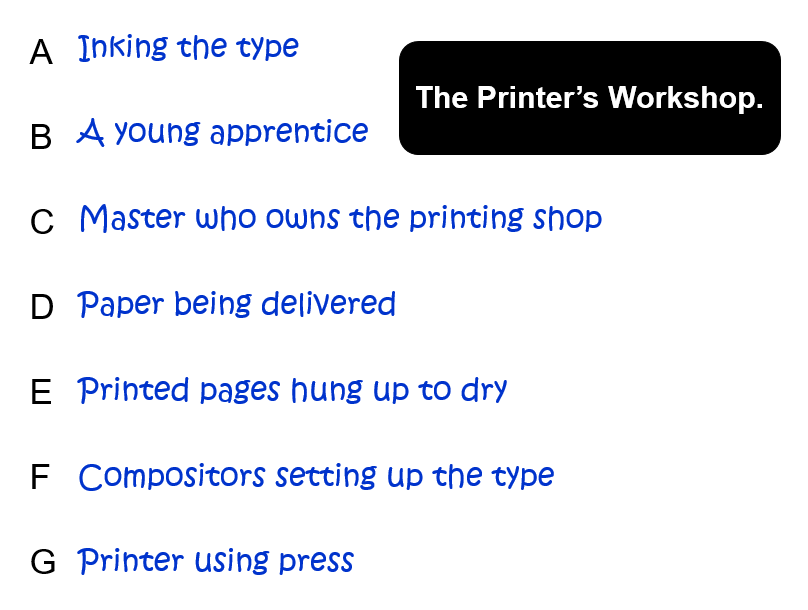 Finally, do “The Printer’s Workshop”, p.19 (matching task).