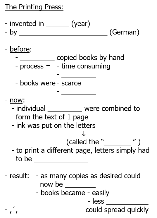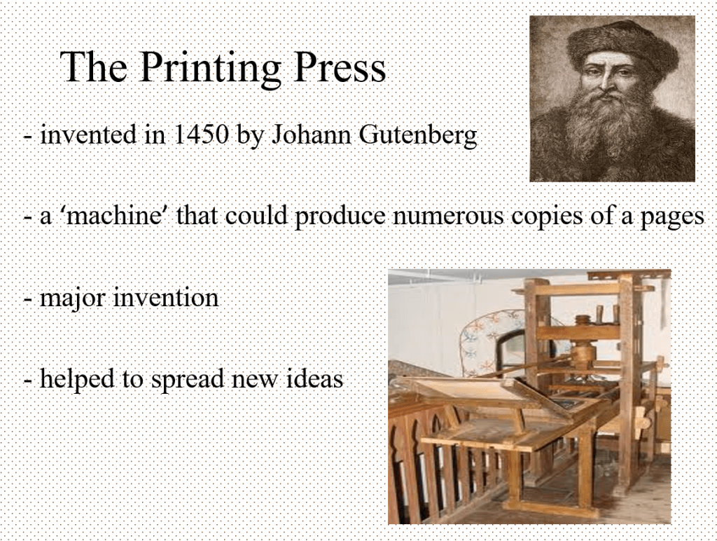 Today you are going to examine the Printing Press in more detail, as it played a major part in the spread of new ideas! (You will be watching a lot of videos during this lesson to learn about the Spread of new Ideas – pay close attention!)