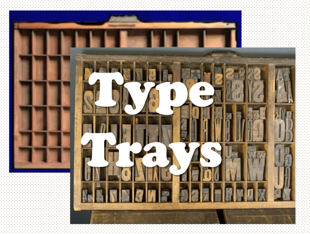 The type (or letters) were kept in special trays, also known as “printers’ trays”. (These are now collectors’ items!)