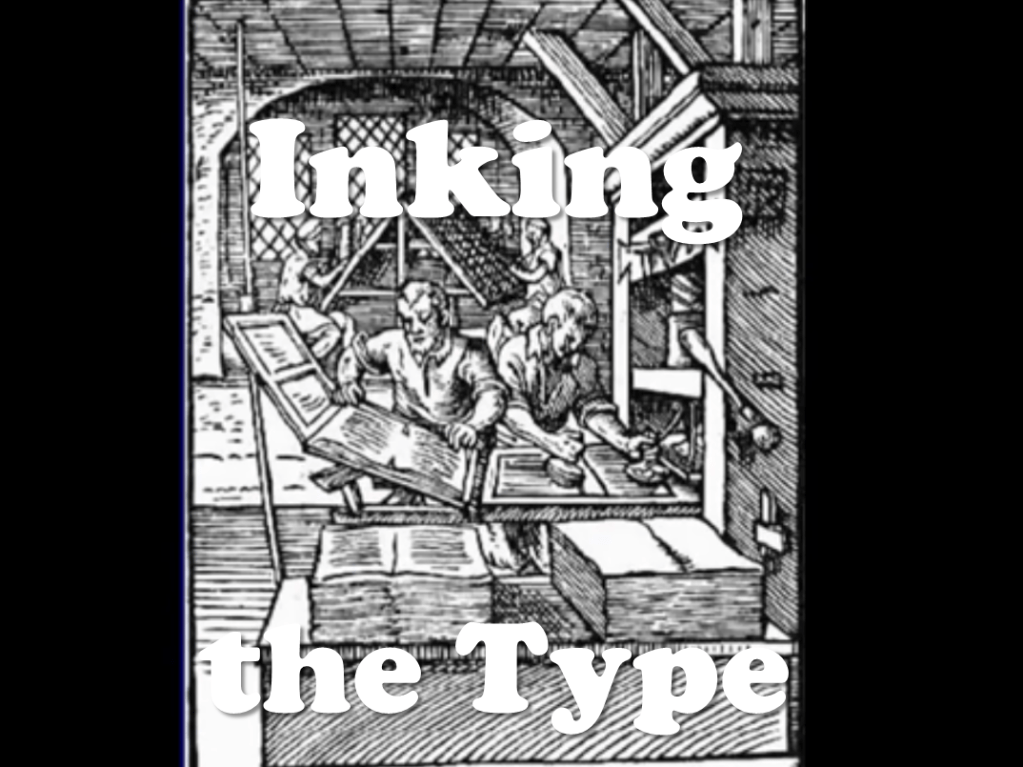 “Inking the type” refers to the process whereby balls of ink were used to put ink on the letters, in order to “print” multiple copies of the pages.