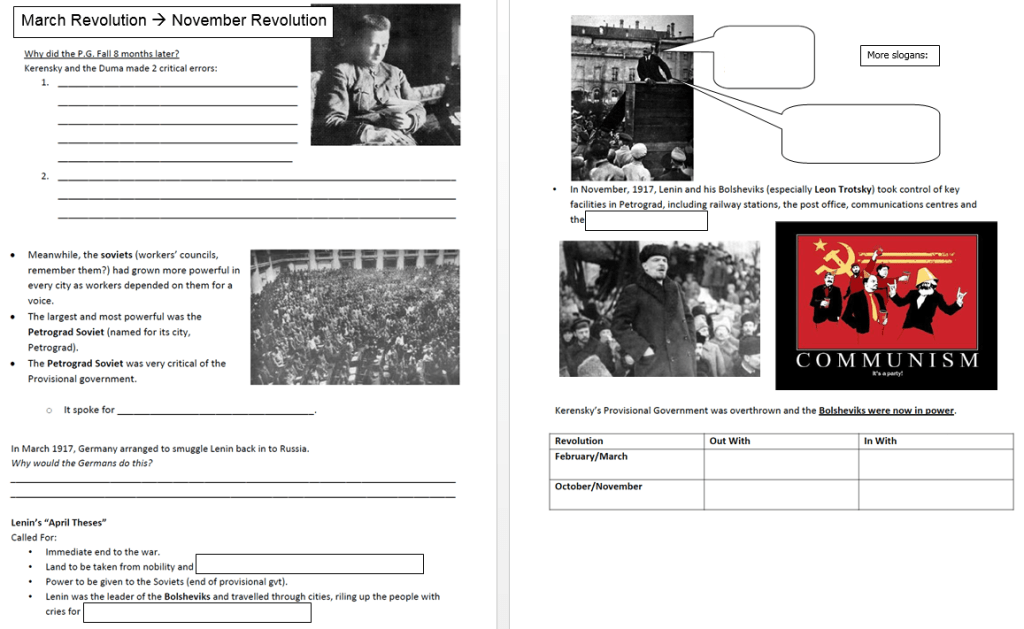 Now, complete the worksheet called “March Revolution to November Revolution”: