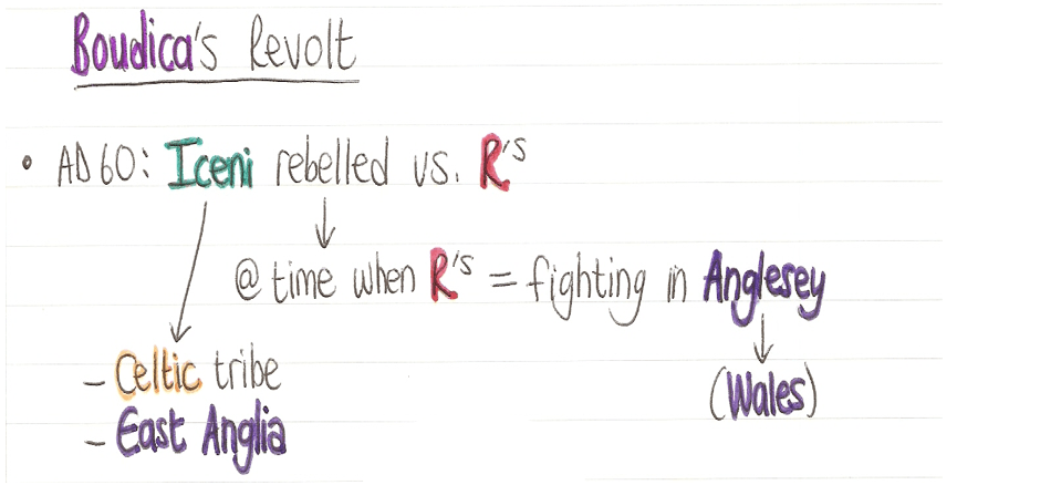 “Boudica’s Revolt, p.10 – my own notes”