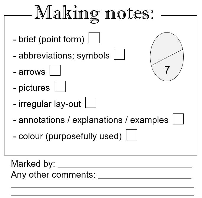 Once you have completed your notes, ask a peer to mark the notes according to this criteria: