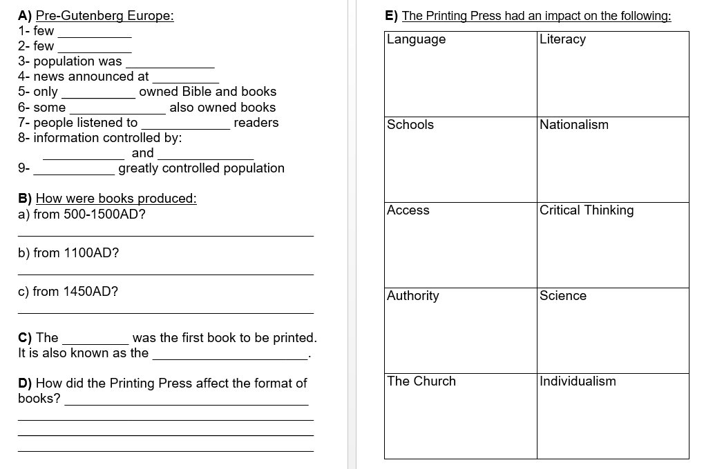 Now complete the assessment task on the Impact of the Printing Press. (It will be handed out to you.)
