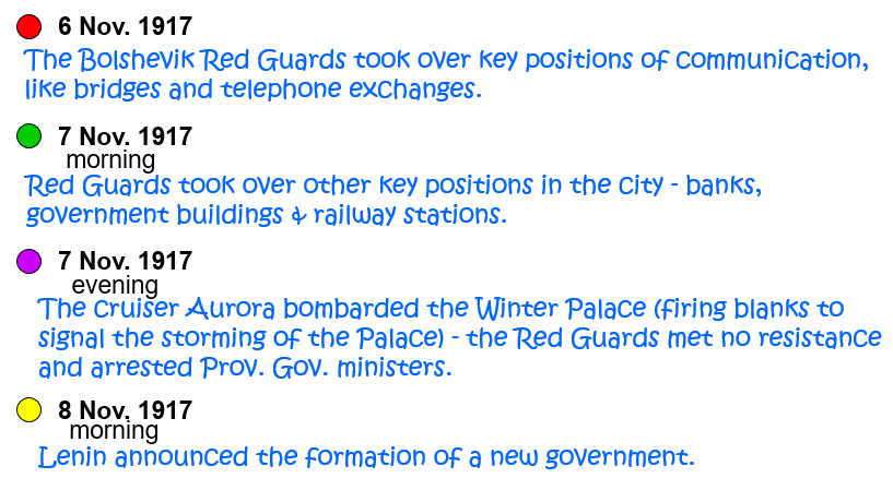 The information on “The Bolsheviks take power” and “The October Revolution”, p.15.