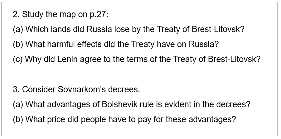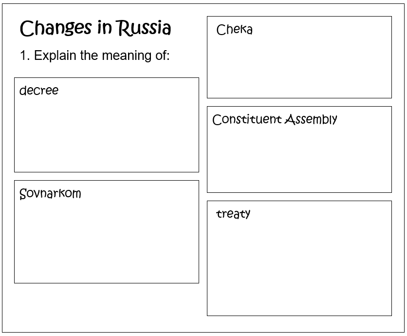 Today you are going to complete some tasks about the changes that took place in Russia after the Bolsheviks took over.