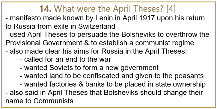 Mark the 4-mark Questions completed recently, on “Tsarist Russia”.