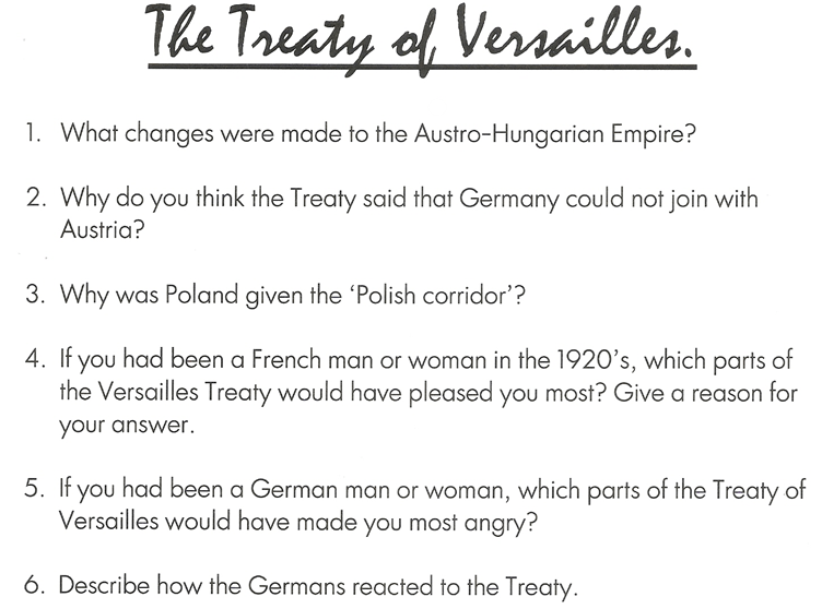 Your workbook has all the details that you need to know about the Treaty of Versailles.