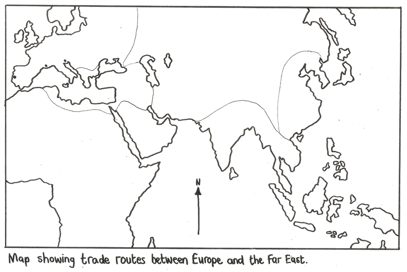 Now, on the map (on p.30 in your workbook), draw in the trading routes that Europeans used to reach the Far East during the Middle Ages.