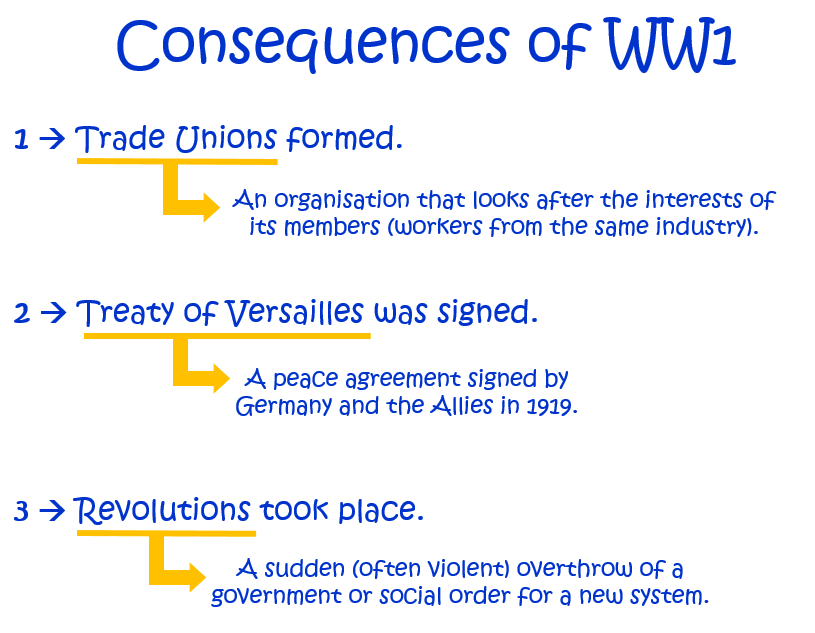 Today you are going to look at the consequences of WW1 in a bit more detail.