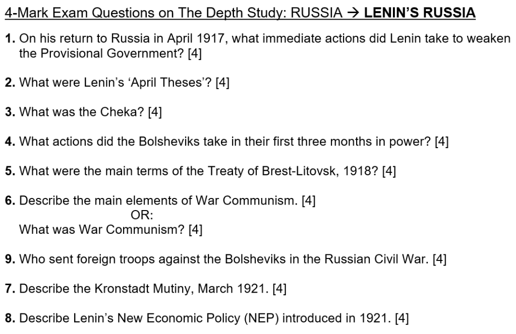 8. Describe Lenin’s New Economic Policy (NEP) introduced in 1921. [4]