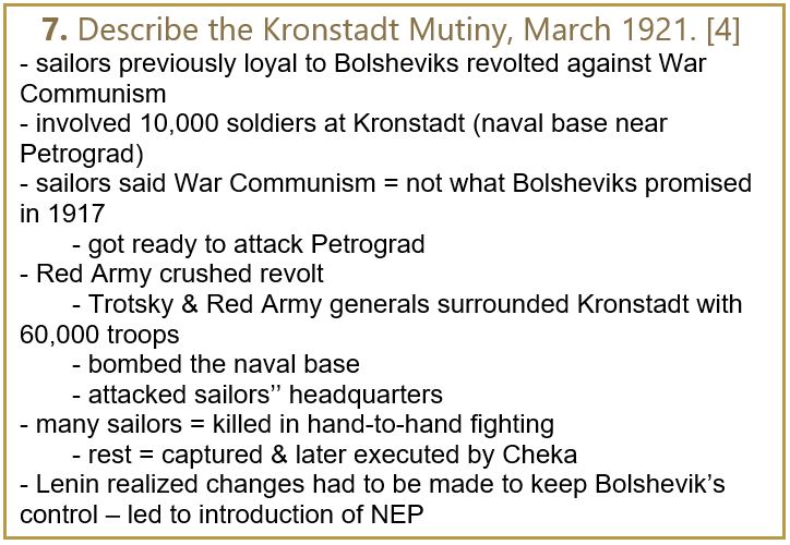 7. Describe the Kronstadt Mutiny, March 1921. [4]