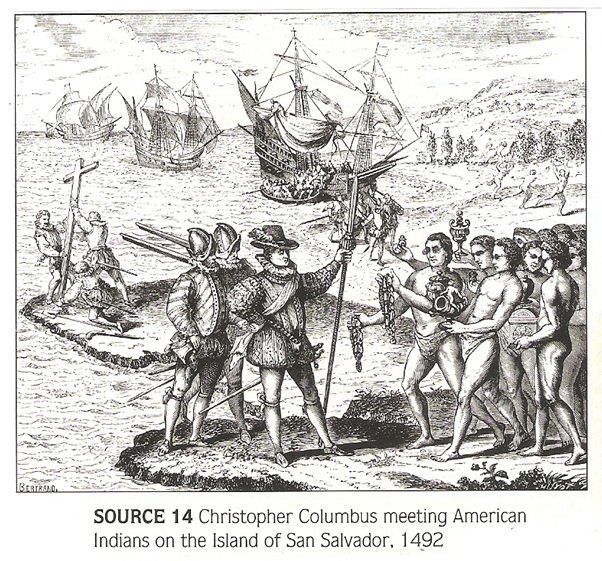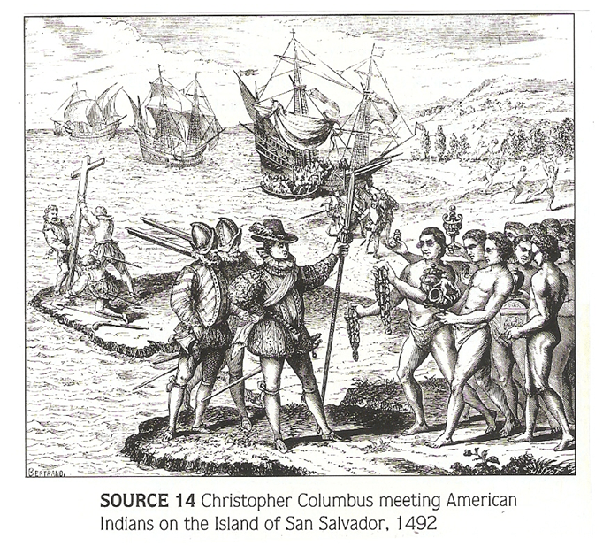 Source 14 shows trading goods in the foreground of the picture, as well as a Christian cross in the background. It seems that Columbus had similar motives, to Prince Henry, for exploration: