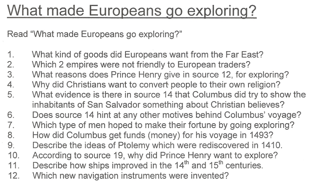 Now it is time to test your knowledge and understanding of this section on “why Europeans went exploring”…