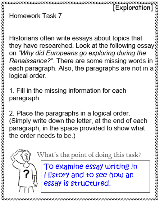 When arranging the order of the paragraphs, start by finding a paragraph that will be a good introduction. Then find one that will be a good conclusion. Use the rest of the paragraphs for the body of the essay – make sure that they link to each other in a logical way…