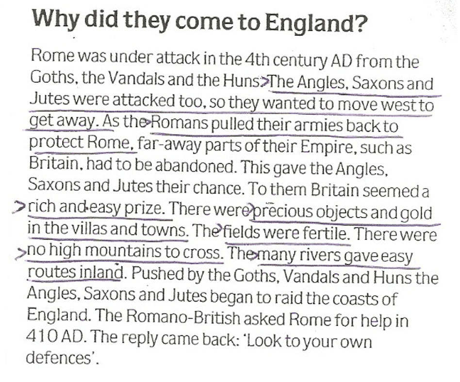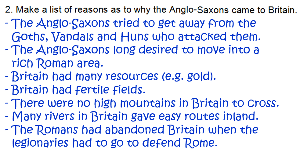 Read the paragraph on p.39 of your Workbook again. This time, underline the reasons as to why the Anglo-Saxons went to Britain.