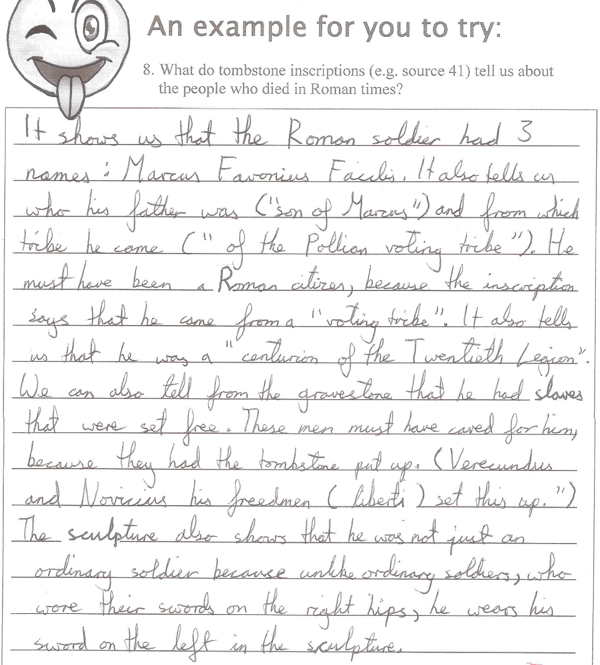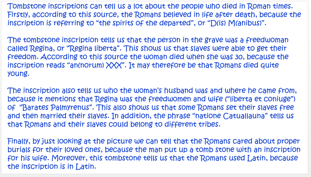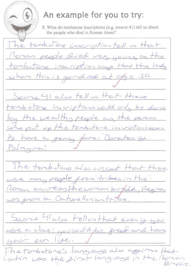 Here is some feedback for the Source Question on tombstone inscriptions (Question 8, on p.36 of your Workbook). How does your answer compare with this example answer?