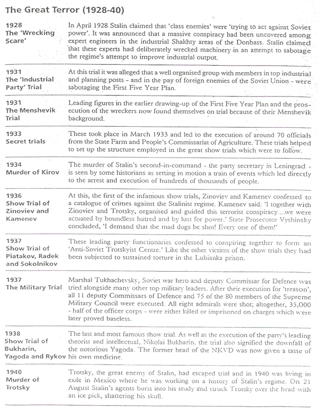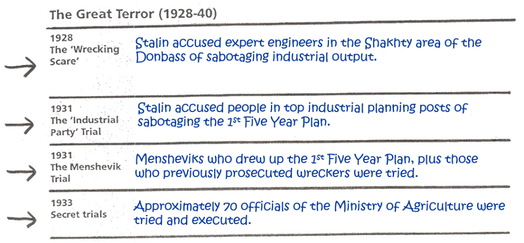 Now copy the diagram below. It gives an overview of Stalin’s reign by terror:
