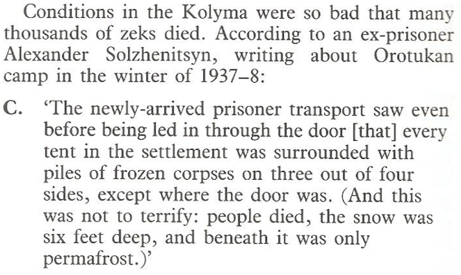 “Study Sources A, B and C How reliable are these sources to an Historian studying Soviet Labour Camps?” (5)