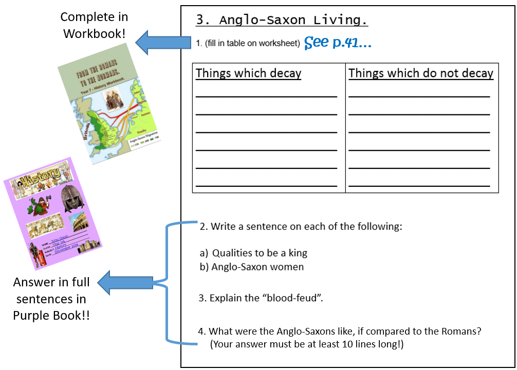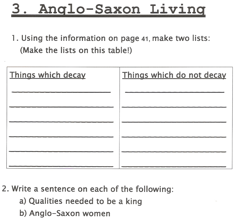 Are all your books up to date? Have you completed the questions on “Anglo-Saxon Settlement” (p-44) from the previous lesson?? If not complete the questions now, before you continue with the next task.