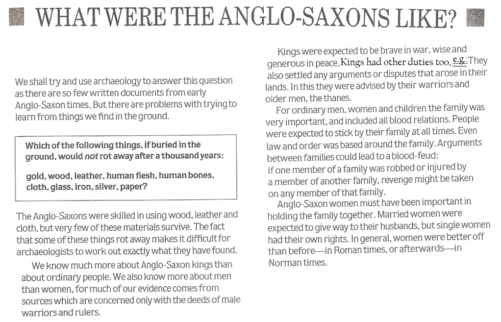 Now, let’s test your knowledge and understanding further… Do the questions on p.46 on “Anglo-Saxon Living”. First, you need to do Part 1 in your Workbook…